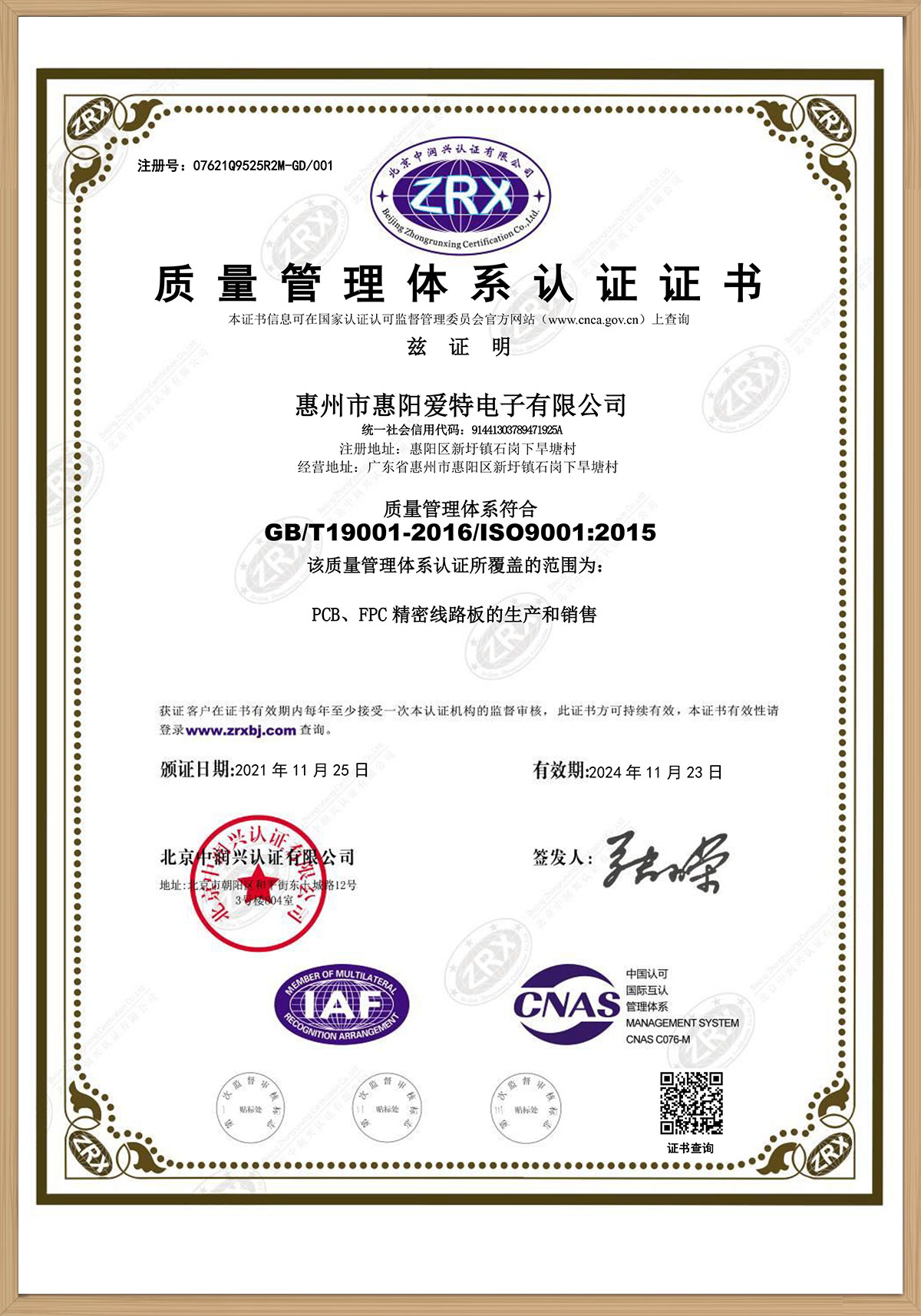 ISO9001證書